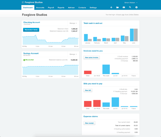 With Xero, you can get an overview of your total cash in and cash out on your dashboard to quickly visualise your current cash position. And with the Cash Summary tool, you can drill down into more detail about the movement of cash in and out of your business.