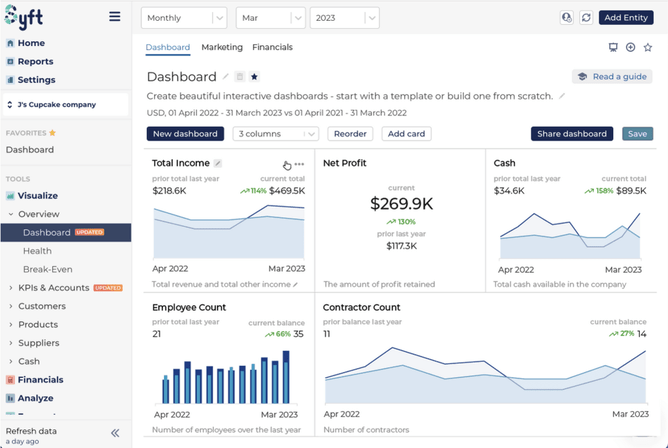 Financial data is useless if it’s confusing. Syft turns raw numbers into clear, colourful dashboards and reports.