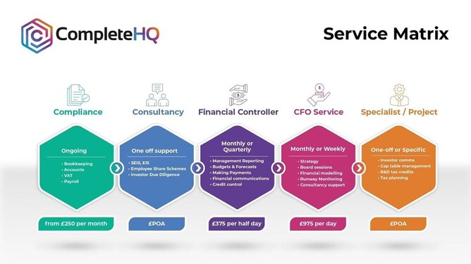 Investor comms, R&D claims, tax planning, cap table management.